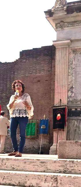 Maria Mantello prononçant son discours devant la Porte Pia le 20 septembre 2020